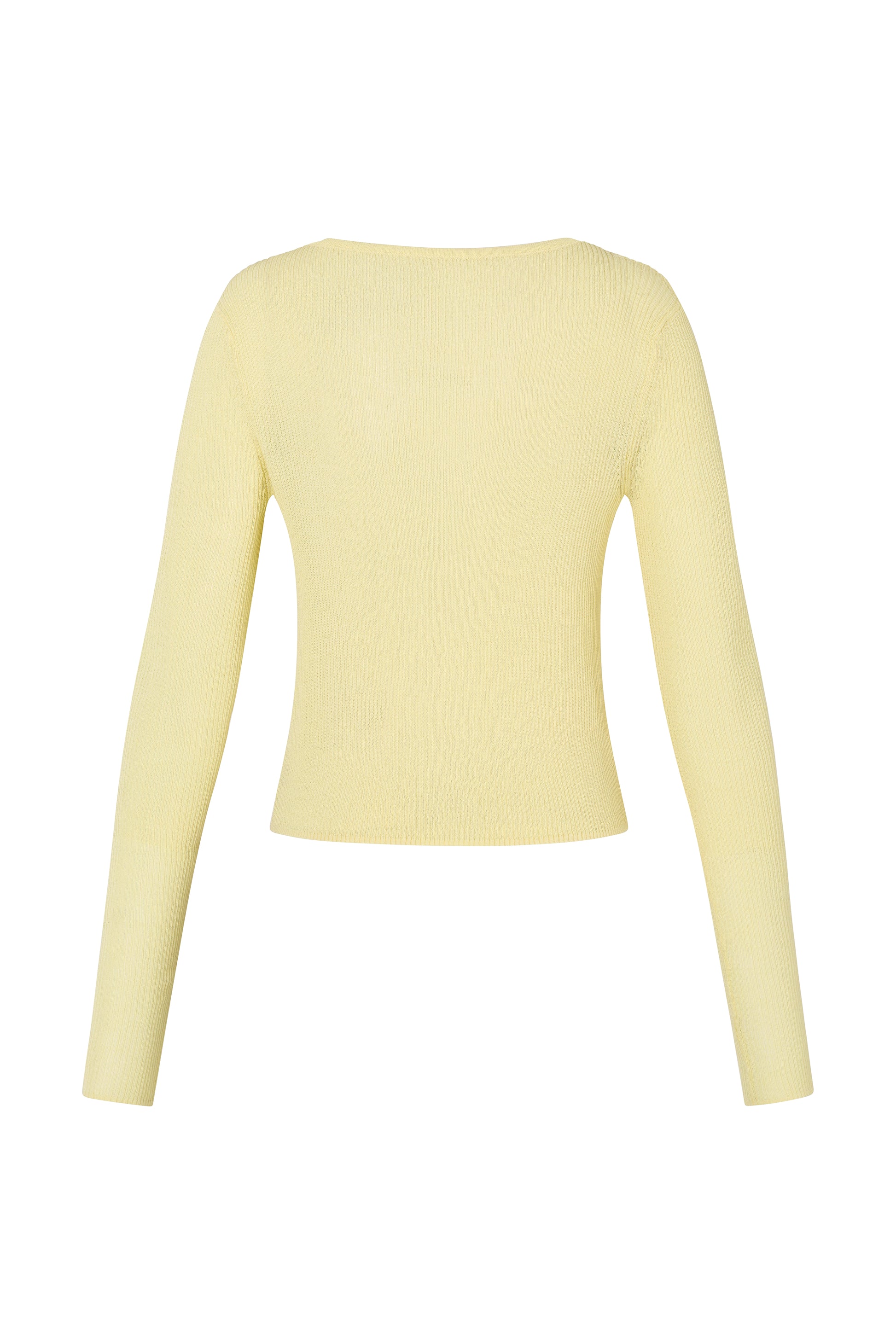 Lightweight and refined, the Maeve Cardigan is crafted from a sheer ribbed knit in a soft butter hue. Designed for a slim fit, it features a scoop neckline, delicate shell button closure, and subtle stretch for all-day ease. An effortless layering piece that moves between seasons with ease.