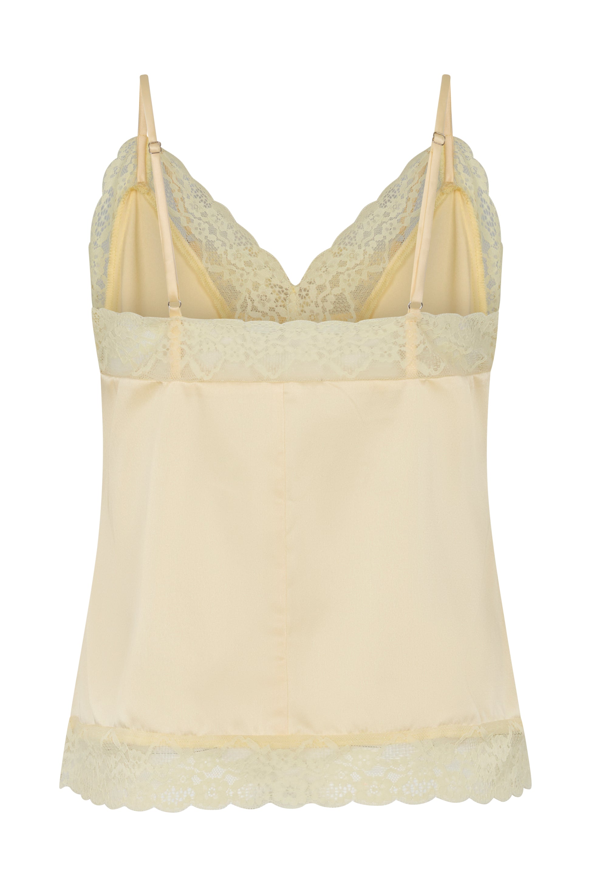 The Pietra Cami in Lemon is delicate and feminine, crafted in soft satin for effortless wear. Designed with a relaxed fit, it features adjustable straps and elegant lace detailing at the bust and hem. Perfect on its own or paired with the Pietra short or pants in Lemon.